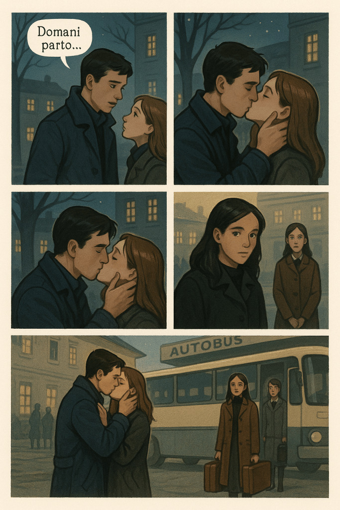 Ci baciammo — sulle guance, sulle labbra — senza fretta, senza parole.