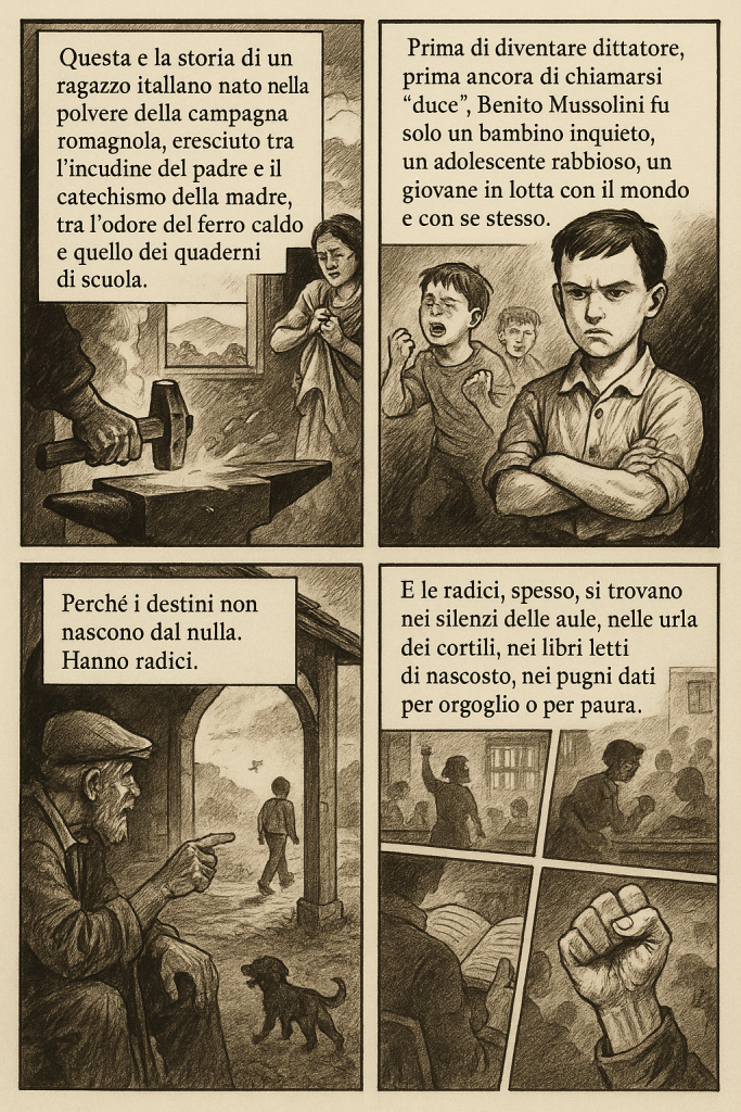 Prima di diventare dittatore, prima ancora di chiamarsi “duce”, Benito Mussolini fu solo un bambino inquieto, un adolescente rabbioso, un giovane in lotta con il mondo e con se stesso.