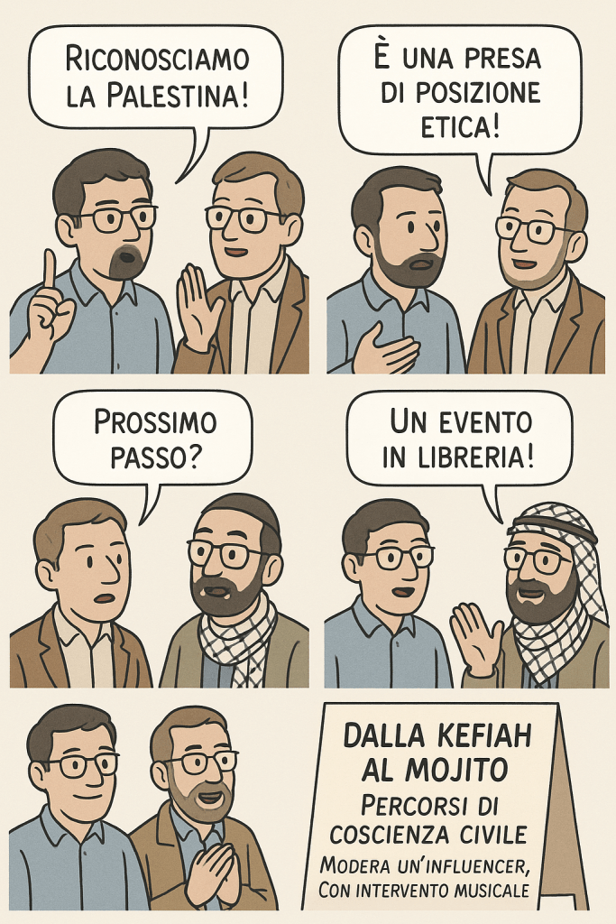 Benvenuti nel mondo incantato della sinistra da terrazza, dove riconoscere la Palestina è diventato l’ultimo trend primaverile, dopo il lino biologico e i reading antifascisti col buffet vegano.