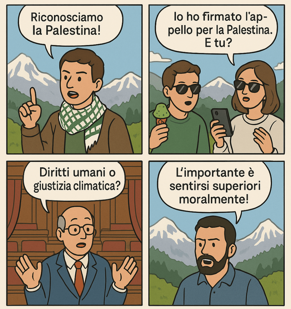 🧩 La verità? In Italia il riconoscimento della Palestina è solo l’ultima coperta di Linus ideologica, usata da un’opposizione incapace di riconoscere sé stessa allo specchio. Una sinistra che, più che fare politica, fa comunicazione per like. E intanto, il Paese reale emigra o si arrangia.