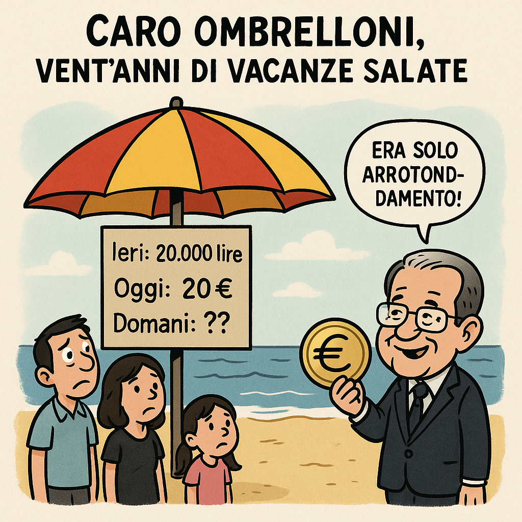 Il caro-ombrelloni non è nato con questo governo. Nasce vent’anni fa, quando 10.000 lire valevano 5 euro, ma i listini li fecero diventare 10. E oggi paghiamo ancora quella furbata.