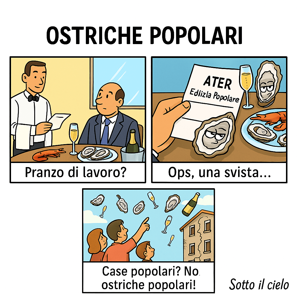 In questo contesto, vedere il nome dell’Ater associato a ostriche e champagne significa infliggere una ferita simbolica. È come dire: mentre voi fate i conti con mutui e sfratti, noi ci godiamo un pranzo da 300 euro.