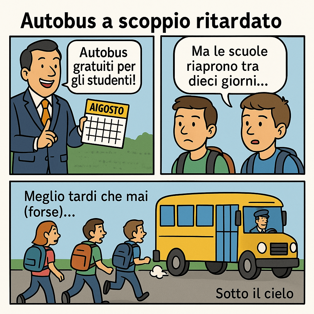Ogni anno, puntuale come la campanella, a fine agosto succede sempre la stessa cosa: i sindaci dei piccoli paesi scoprono che esistono gli studenti, che esistono le scuole, e soprattutto che per raggiungerle bisogna… spostarsi. Una vera rivelazione, roba da prima pagina.