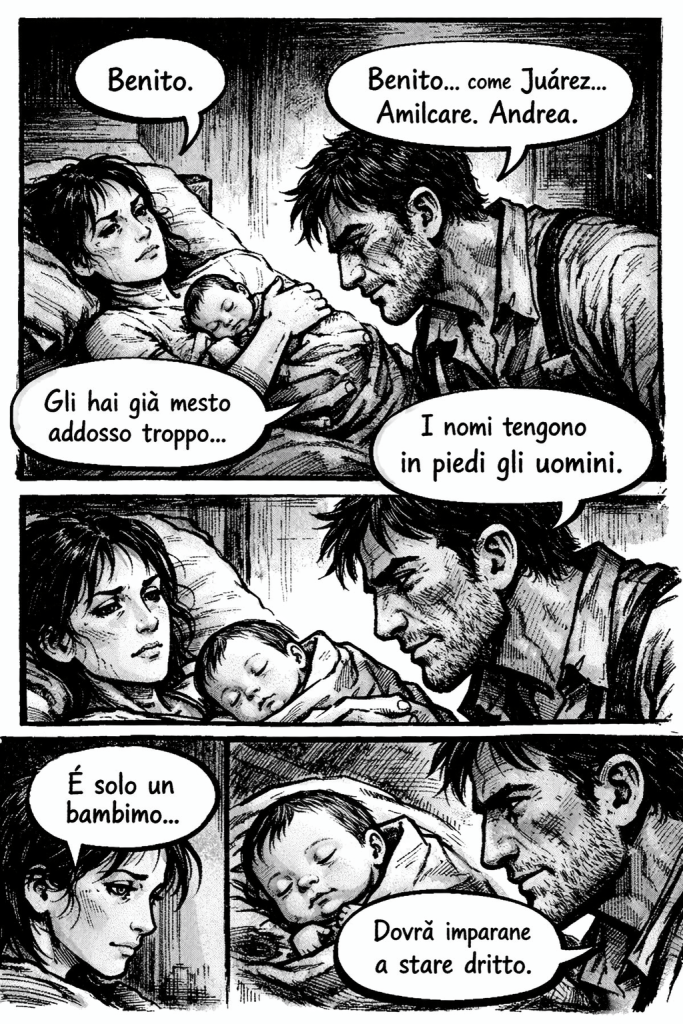 Rosa lo prese in braccio e lo cullò con una pazienza dura.
