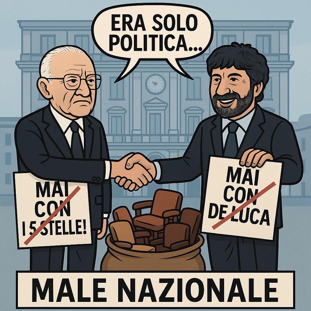 In Campania la contraddizione è ancora più evidente: De Luca era il nemico perfetto, il simbolo della politica da abbattere. Ma quando la sopravvivenza politica si gioca sul filo di pochi voti, ecco che anche il nemico diventa alleato.