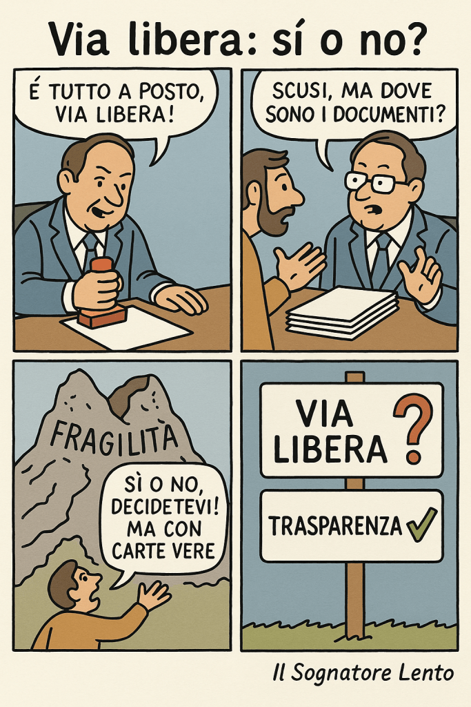 Qui, più che altrove, la gente sa che un errore tecnico può trasformarsi in una tragedia. Per questo la richiesta è semplice: se il Ministero ha davvero espresso un parere favorevole, lo renda pubblico, nero su bianco, accessibile a tutti.