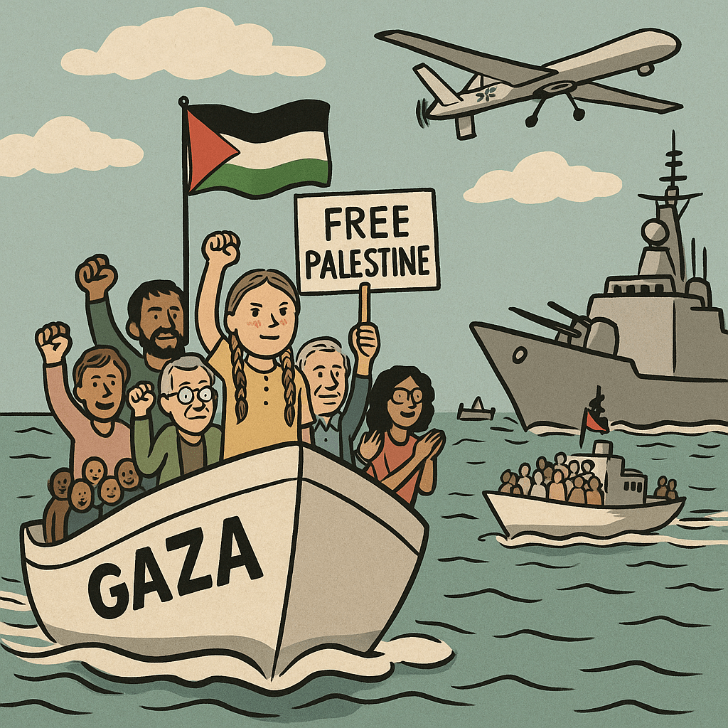 La Global Sumud Flotilla naviga tra onde reali e metaforiche. Potrebbe infrangersi contro il muro della forza, deviare in compromessi controllati o, chissà, segnare un piccolo spiraglio nella lunga notte dell’assedio.