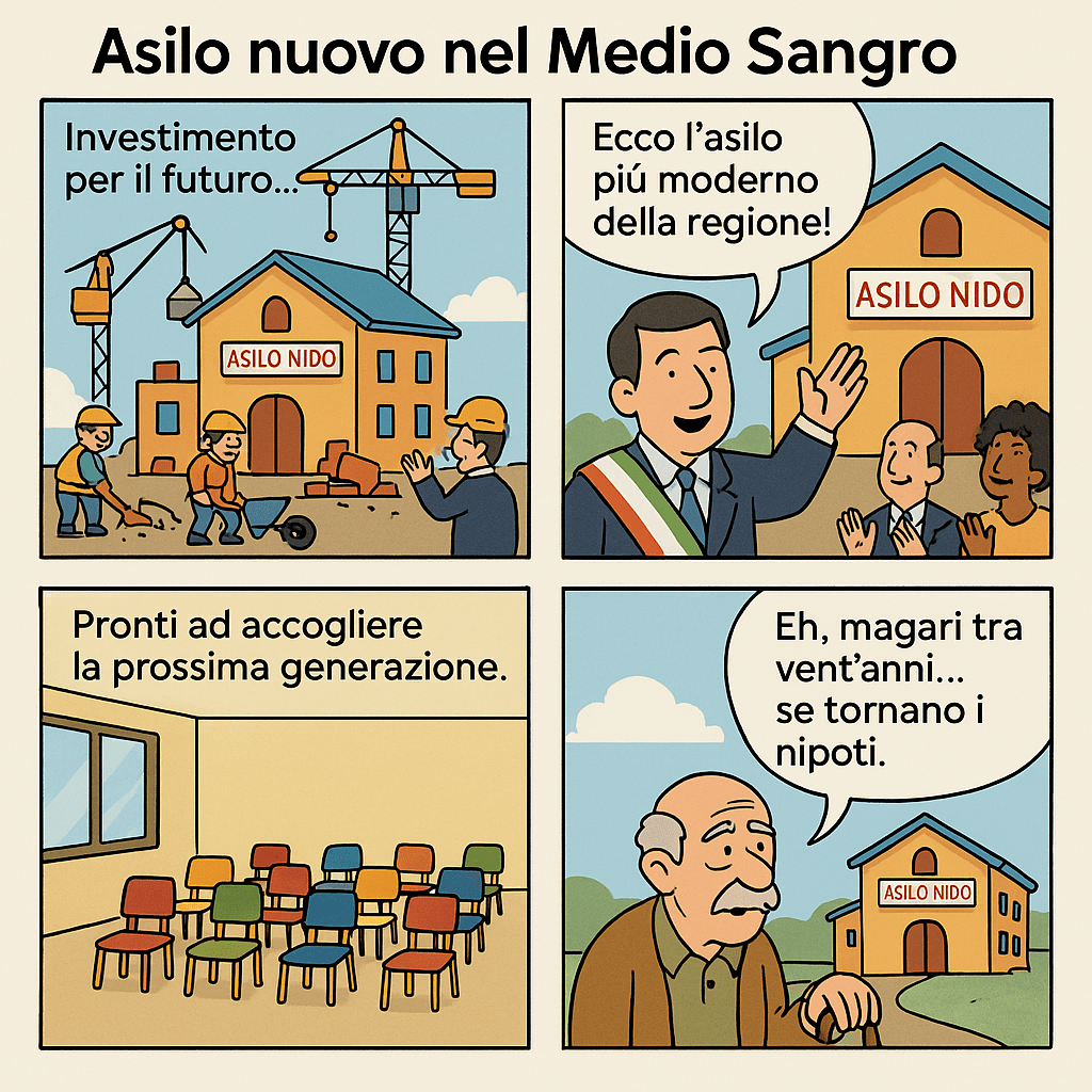 Il punto non è criticare i progetti in sé. Un asilo, se ci fossero bambini, sarebbe una splendida notizia. Ma qui il problema è un altro: si investe nel mattone e non nella vita.