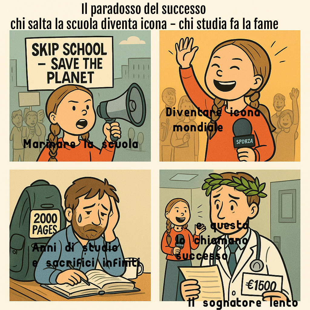 👉 “Chi salta la scuola diventa icona, chi studia una vita fa la fame”