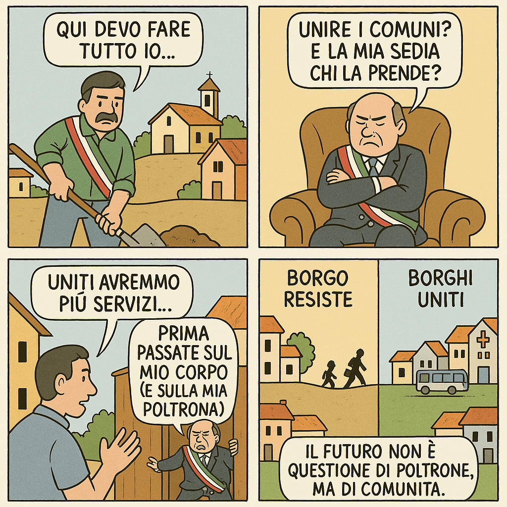 La mia non è una critica personale ai sindaci, ma a un meccanismo perverso che li spinge a difendere la poltrona più che il futuro della comunità. E, quando alla spinta del sistema si aggiunge anche l’ego di qualcuno, allora ogni progetto di unione diventa impossibile.