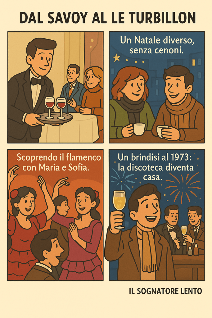 Il 1973 iniziò all’insegna di una nuova avventura. Non più la sala del Savoy, ma le notti intense e rumorose del Le Turbillon. Un nome che sembrava racchiudere già nel suono il vortice di emozioni, incontri e scoperte che avrebbero accompagnato Matteo nei mesi a venire.