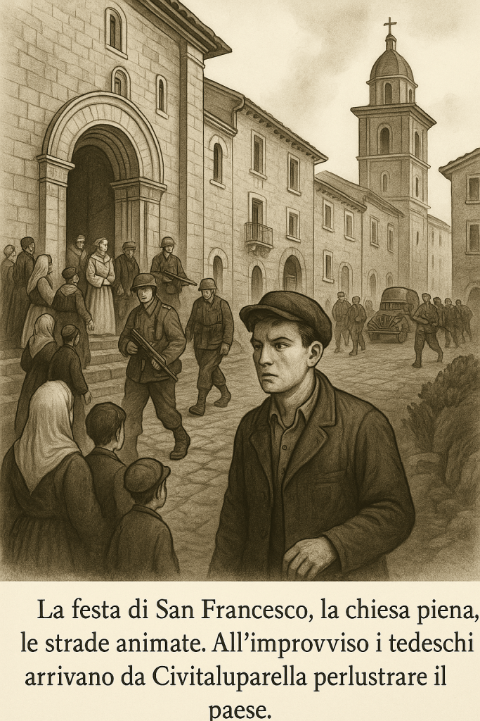 La mattina del 4 ottobre 1943, giorno di San Francesco, Montenerodomo si era svegliato con il ritmo consueto della festa. La chiesa era gremita: donne, uomini e bambini riempivano le navate per la messa solenne e già si preparavano alla processione che avrebbe attraversato le vie del paese. L’aria portava con sé il profumo dell’incenso e il brusio di attesa che accompagna i giorni di celebrazione.