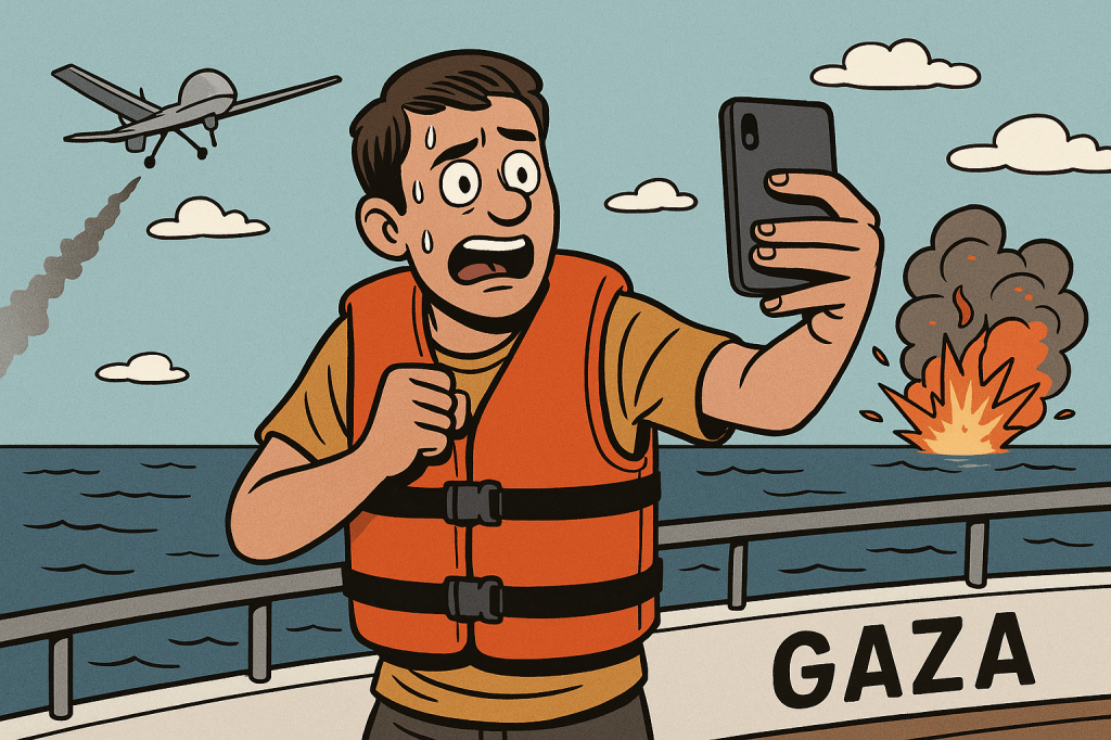 Tra droni e bombe, qualcuno trova comunque il tempo di ricaricare il powerbank: “Scusate, mi cade la linea mentre denuncio i crimini di guerra.”