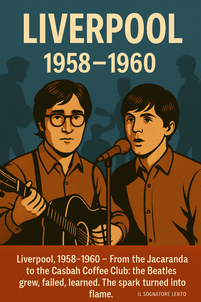 Tra il 1958 e il 1960 i Beatles passarono dall’essere una comitiva di adolescenti con chitarre scordate a un gruppo con un’identità. Lo fecero nei pub fumosi, nei club improvvisati, nelle sale da ballo affollate. Lo fecero soprattutto al Casbah Coffee Club, che divenne la loro prima casa.