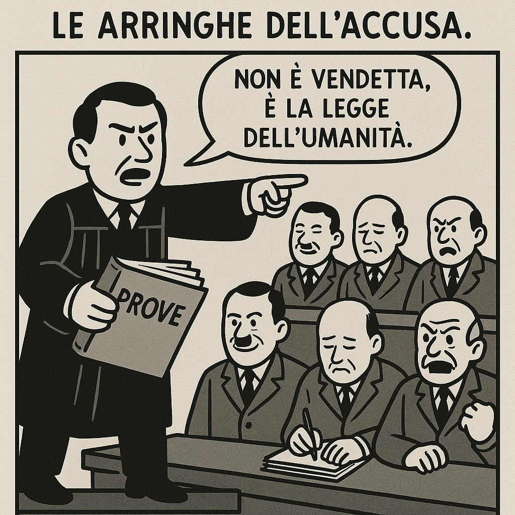 Con le arringhe finali, l’accusa pose le fondamenta della sentenza che sarebbe arrivata in autunno. Ma soprattutto fissò un principio nuovo: che esistono crimini così gravi da non poter restare impuniti, a prescindere da confini, ordini o governi.