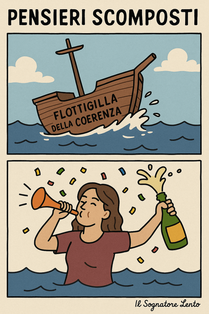E noi, in fila davanti alle stazioni, ci chiederemo se il treno della logica sia già partito… o se sia semplicemente deragliato.
