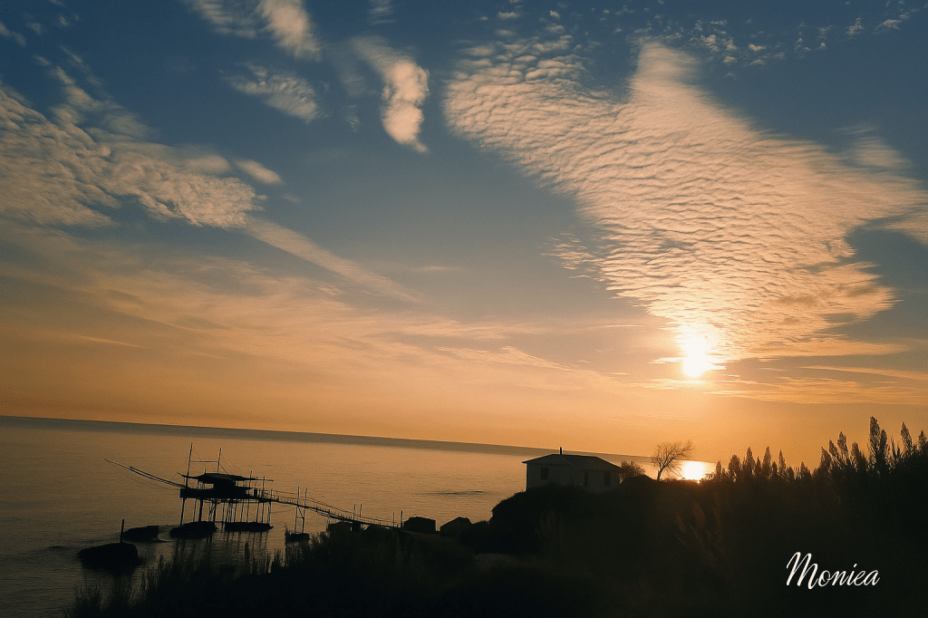 Ogni foto è un piccolo racconto: questa cattura l’attimo in cui il sole incontra il mare e i trabocchi ritrovano la loro voce antica.