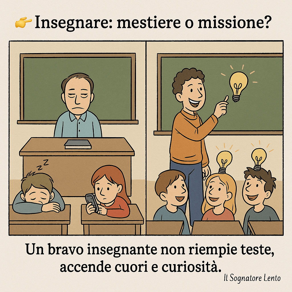 Per questo non basta sedersi a una cattedra. Bisogna avere la vocazione, la passione, la capacità di reinventarsi ogni giorno. Insegnare è un’arte, e come ogni arte richiede talento, ma anche studio, disciplina e cuore.