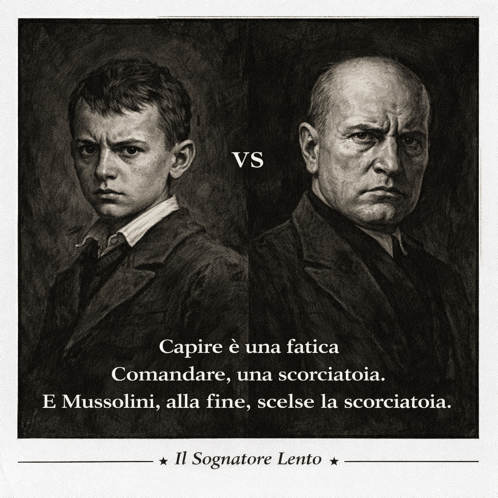 Crescendo, quel ragazzo si mostrò subito diverso: intelligente, rapido nell’apprendere, ma insofferente alle regole. Sapeva discutere con i professori, affascinare i compagni, imporsi con la voce. E sapeva anche cedere all’impulso.