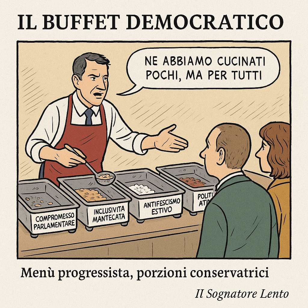 Nel grande ristorante della politica italiana, la sinistra continua a proporre menù raffinati ma porzioni invisibili.