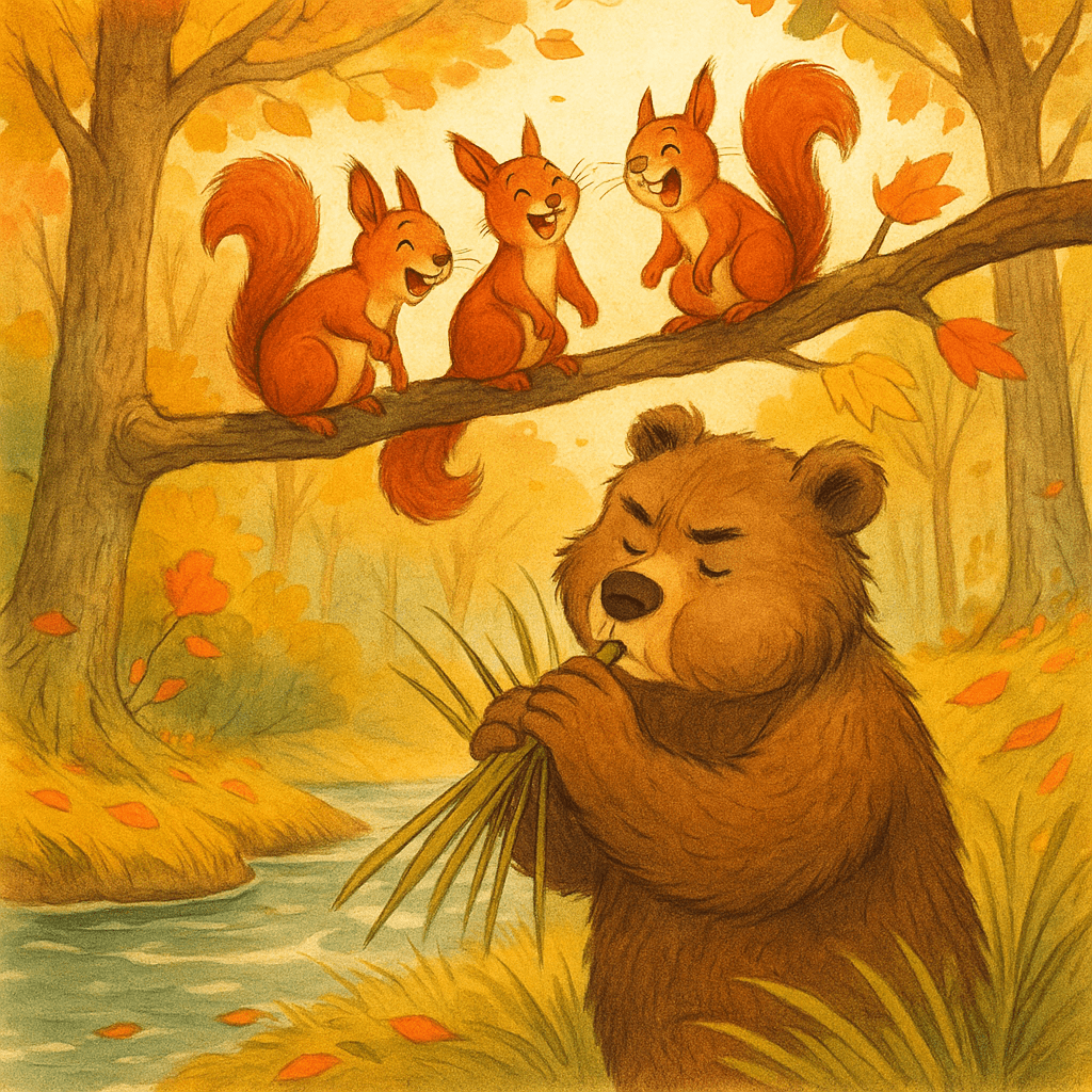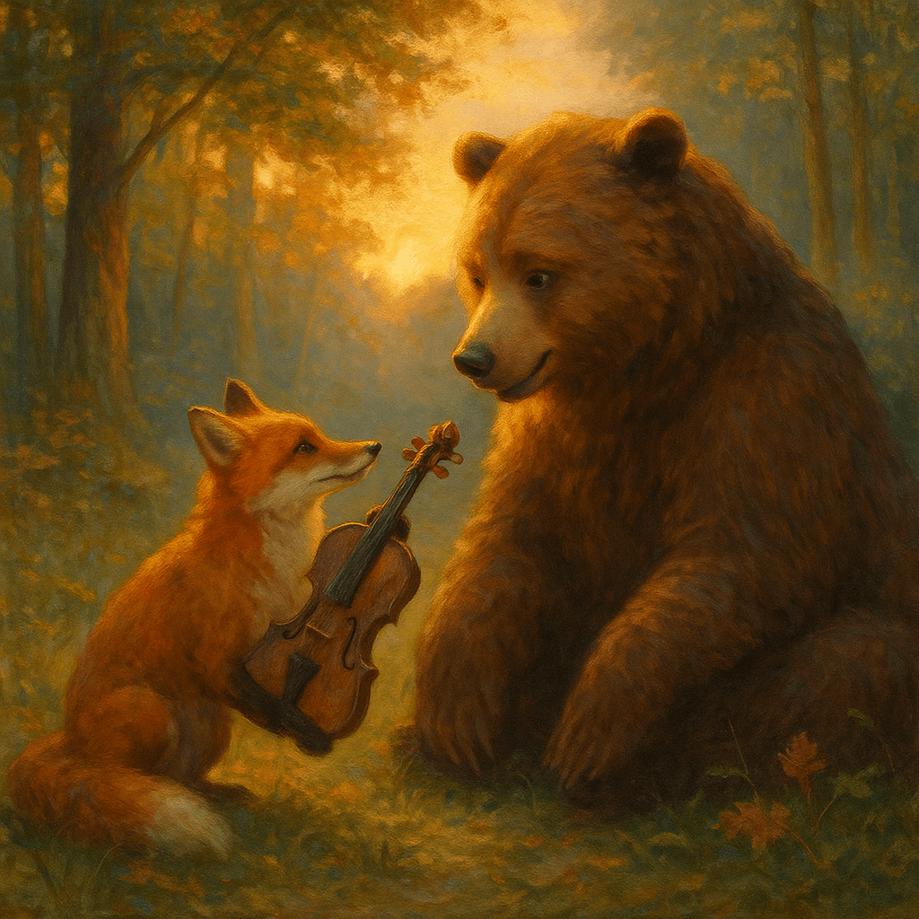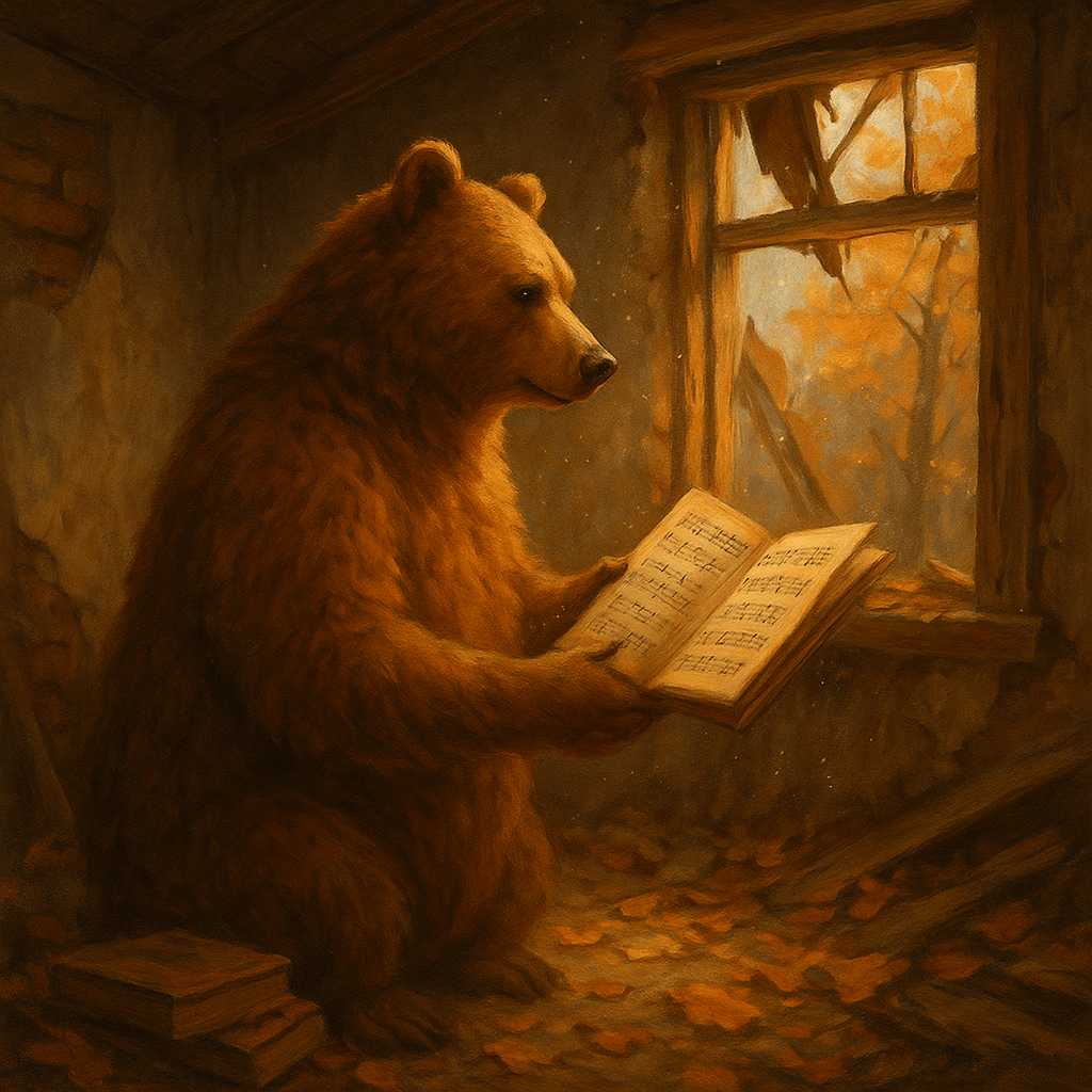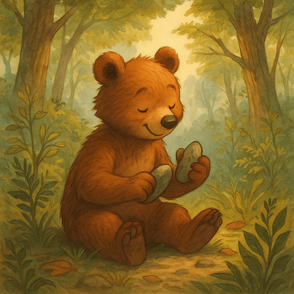 Il piccolo Bartolomeo scopre che ogni suono del bosco ha una voce: il vento, le pietre, le foglie… Tutto può diventare musica, se impari ad ascoltare. Gli anni passarono, e il piccolo orso divenne grande.