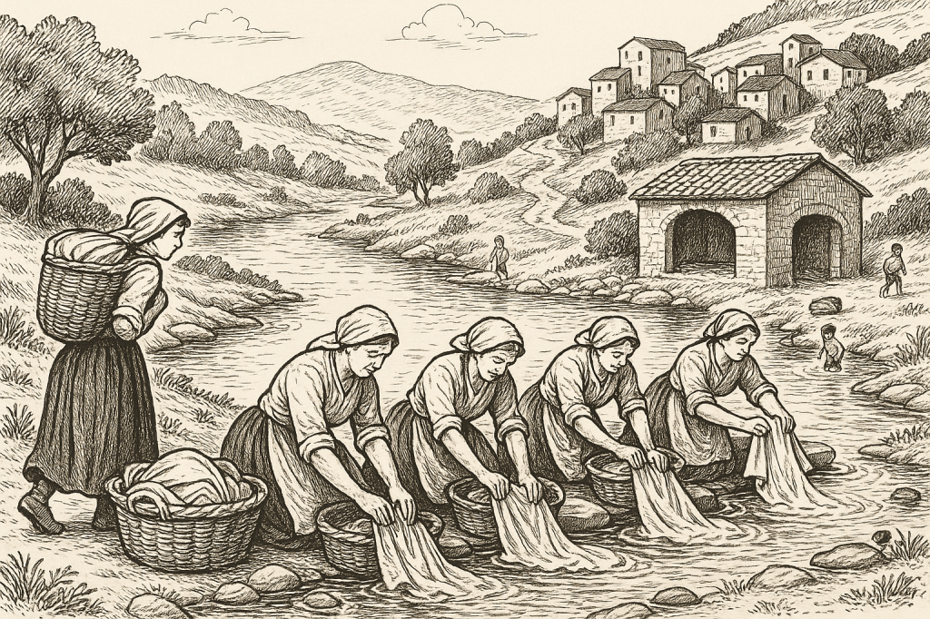 Con il tempo, la comunità decise di rendere quel lavoro meno duro. Fu costruita una piccola casa sul torrente: l’acqua scorreva all’interno e al suo fianco furono ricavati i lavatoi in pietra. Non era ancora la comodità delle lavatrici, che sarebbero arrivate decenni dopo, ma rappresentava un passo avanti importante. Al coperto, le donne potevano lavare senza inginocchiarsi sul greto, protette dal freddo e dalla pioggia. Il lavatoio diventò così il nuovo centro della vita femminile: le voci, i canti e le chiacchiere che un tempo