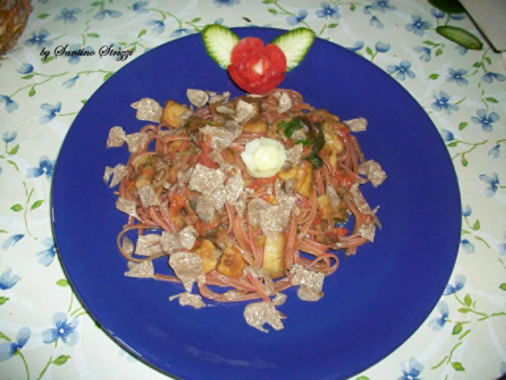 Il piatto si presenta in toni caldi e avvolgenti: il rosso tenue del pomodoro, il marrone dorato dei funghi e il nero lucente del tartufo creano un mosaico di terra e passione. Ogni colore racconta una sfumatura del paesaggio abruzzese â dal bosco alla collina.