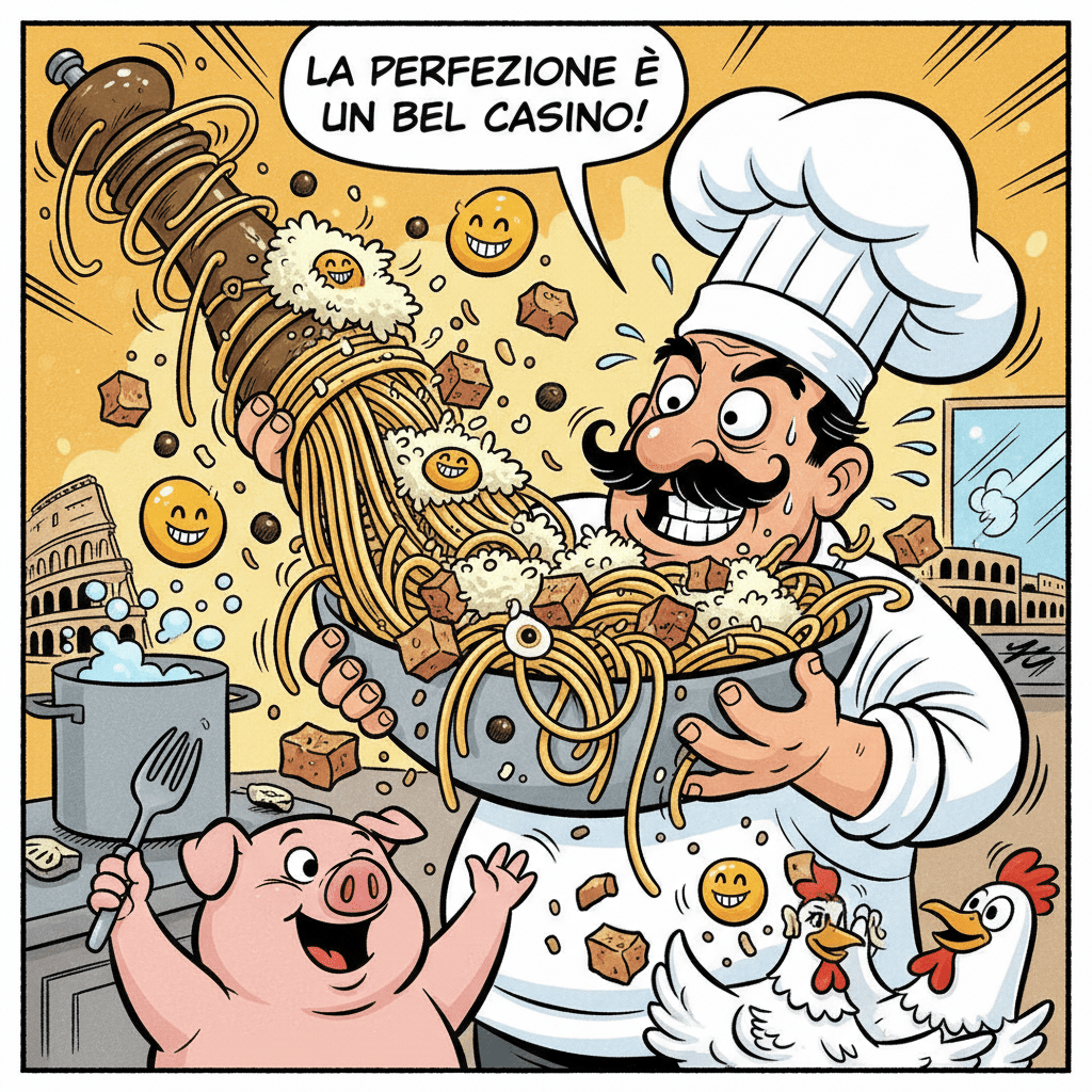 il calore residuo della pasta deve cuocere leggermente le uova senza strapazzarle, creando una crema setosa e avvolgente. - Impiatta subito, completando con una spolverata di Pecorino e una generosa macinata di pepe nero.