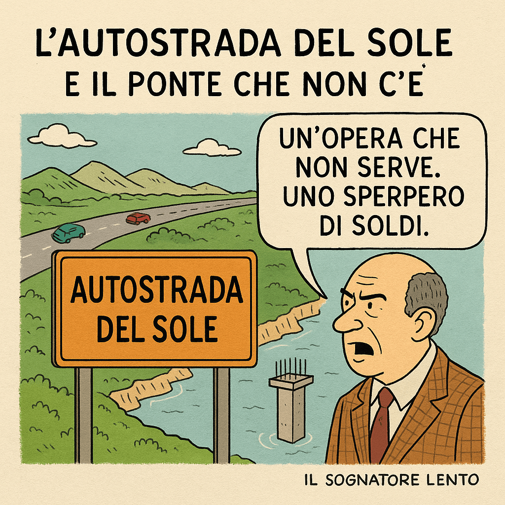 🛣️ “L’Autostrada del Sole e il ponte che non c’è – L’Italia, sempre in coda davanti al futuro.”