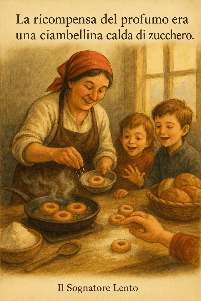 E arrivava il momento della ciambellina con lo zucchero, preparata con la stessa pasta del pane: piccola, calda, spolverata di dolcezza — il premio di chi sapeva aspettare.