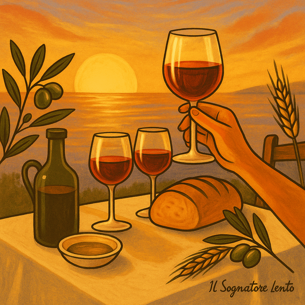Questa frase riassume perfettamente lo spirito mediterraneo: il vino è un dono, non una fuga.