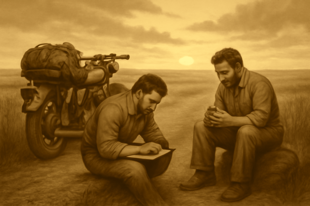 Prima di ripartire, Ernesto aprì il quaderno e rilesse una frase scritta settimane prima: “La povertà è una lingua.” Vi aggiunse: “La dignità è un accento che non si perde.” Chiuse il taccuino, salì in sella, diede un colpo di gas. Il suono fu netto, sicuro. Alberto gli batté una mano sulla spalla. “Andiamo a vedere se il mondo ha un cuore.” “Ce l’ha,” disse Ernesto. “Bisogna avvicinarsi abbastanza