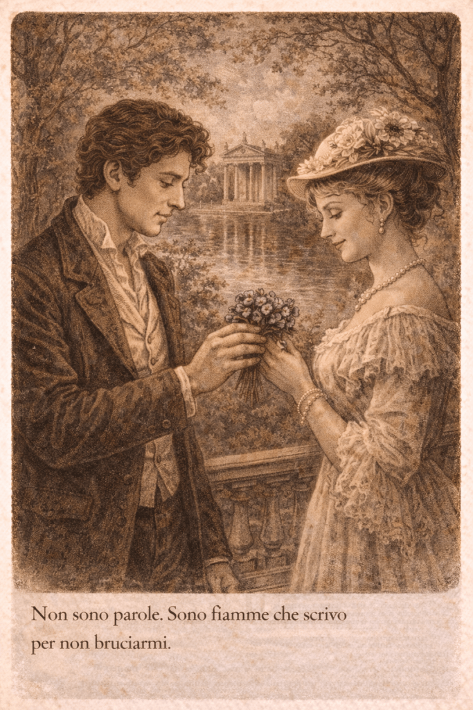 Si incontravano ai giardini di Villa Borghese, nei pomeriggi di primavera. Lei parlava di musica, lui rispondeva in versi improvvisati.