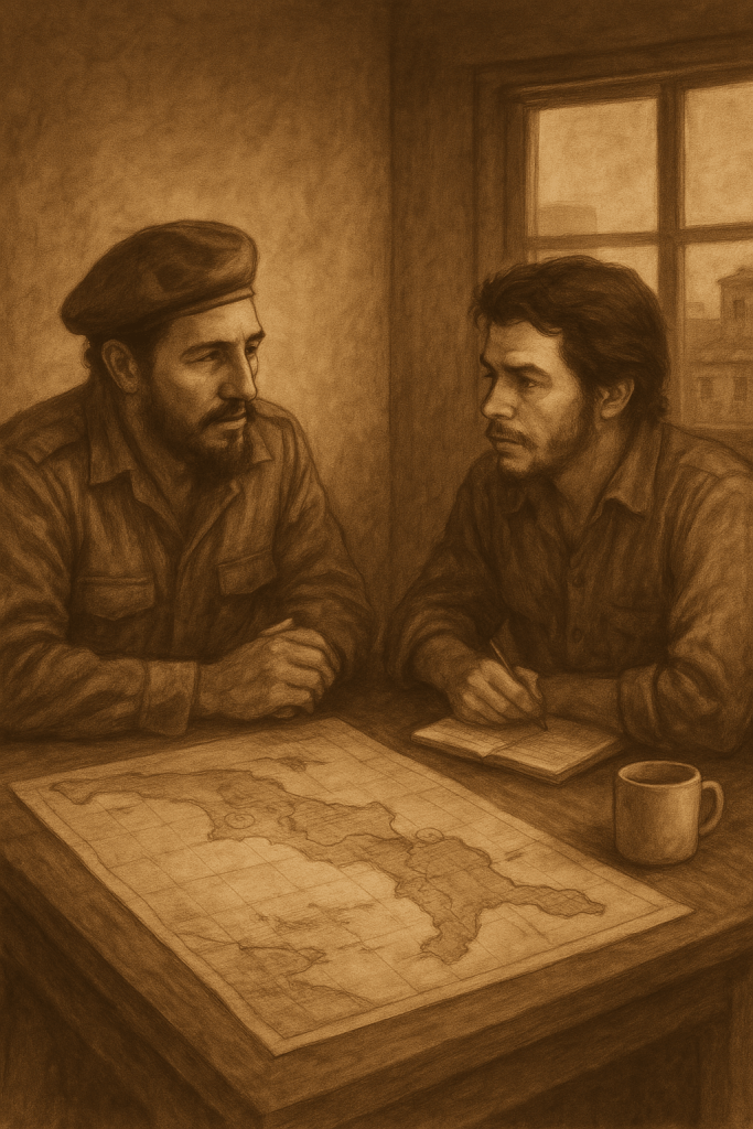 E una sera, in una casa piena di fumo e discussioni, incontrò un uomo alto, con la barba folta e la voce calda: Fidel Castro.