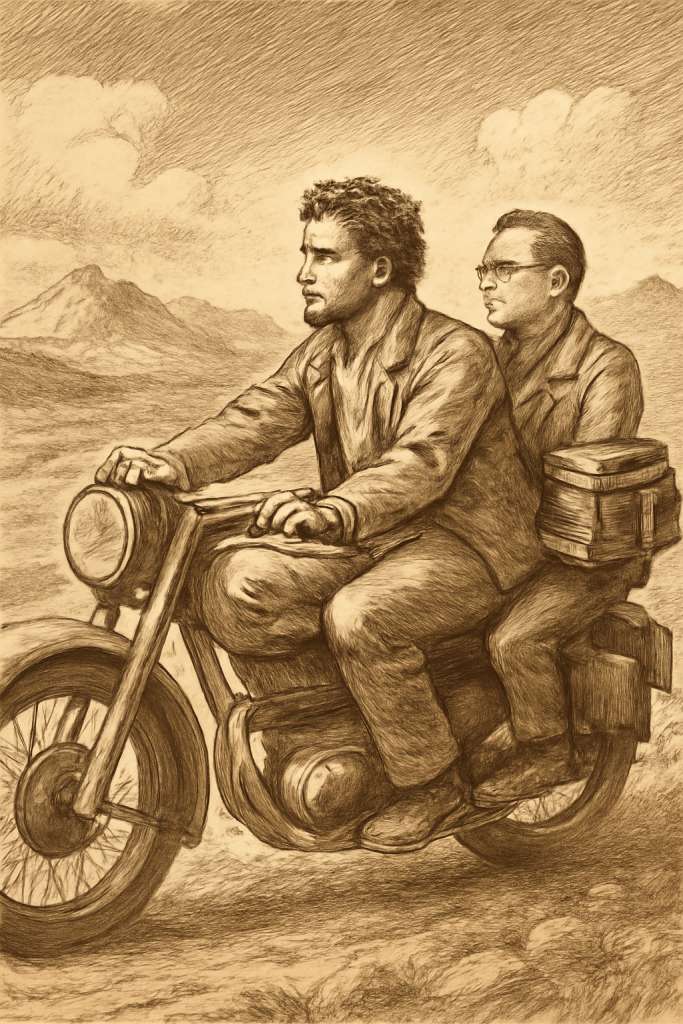 Nelle tasche portava un quaderno di pelle, una penna consumata, qualche appunto di medicina e una mappa stropicciata dell’America Latina. Nel petto, una tosse che gli ricordava che il respiro non è scontato, e forse per questo vale la pena difenderlo.