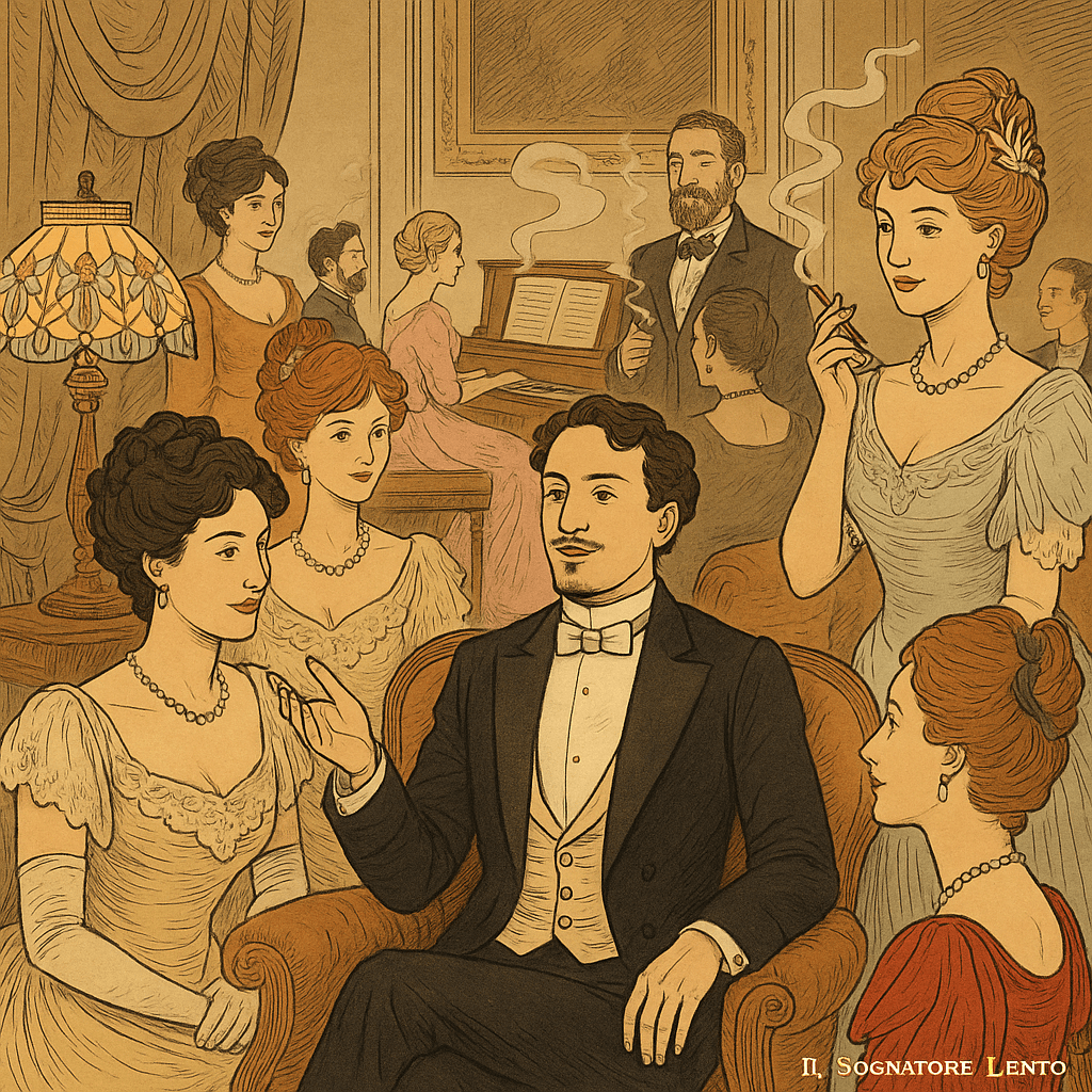 dell’aristocrazia si parla di un giovane abruzzese capace di incantare con la parola come un incantatore d’Oriente.