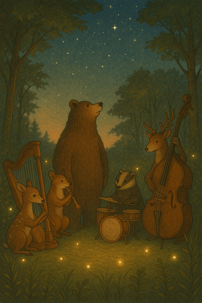 Ogni animale suonava con attenzione, ma anche con gioia — quella gioia semplice che nasce solo quando si è in armonia con tutto ciò che vive.