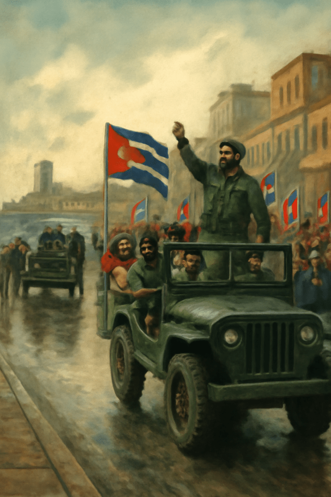 Le jeep dei ribelli percorrevano il Malecón tra applausi e lacrime; le bandiere sventolavano sui balconi, i soldati di Batista fuggivano in abiti civili.