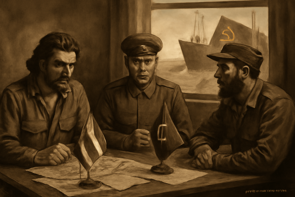 Cuba si volta verso est: Fidel Castro e Ernesto “Che” Guevara siedono al tavolo con un emissario sovietico.