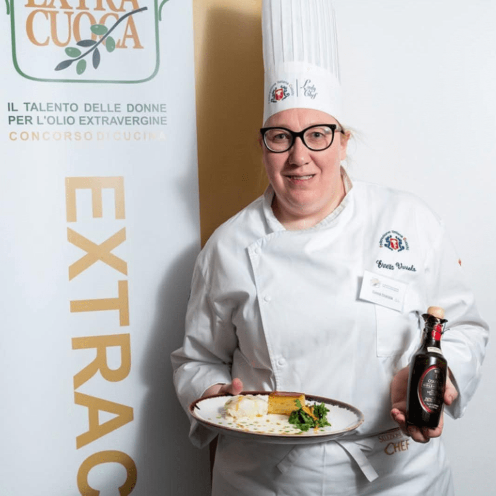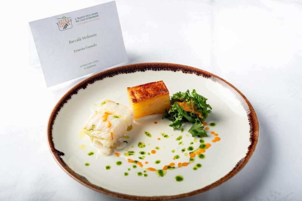 Nel dicembre 2024, presso l’Università dei Sapori di Perugia, la chef molisana ha conquistato il 1º posto nella categoria “Secondi Piatti” alla quarta edizione del concorso nazionale Extra Cuoca – Il Talento delle Donne per l’Olio Extravergine di Oliva. Il suo piatto, “Baccalà Molensis”, ha incantato la giuria per eleganza, equilibrio e valorizzazione dell’olio Molensis dell’azienda Marina Colonna. Promosso dal Comitato Ercole Olivario, insieme all’Associazione Nazionale Donne dell’Olio e alla Federazione Italiana Cuochi – Dipartimento Lady Chef, il concorso premia ogni anno le migliori interpreti della cucina italiana al femminile, mettendo al centro la cultura dell’olio EVO e la sostenibilità gastronomica. Per Ernesta Vassolo, la vittoria non è stata un punto d’arrivo, ma una tappa di crescita: la conferma che il Molise, con i suoi sapori discreti e autentici, può competere ai più alti livelli della ristorazione nazionale.
