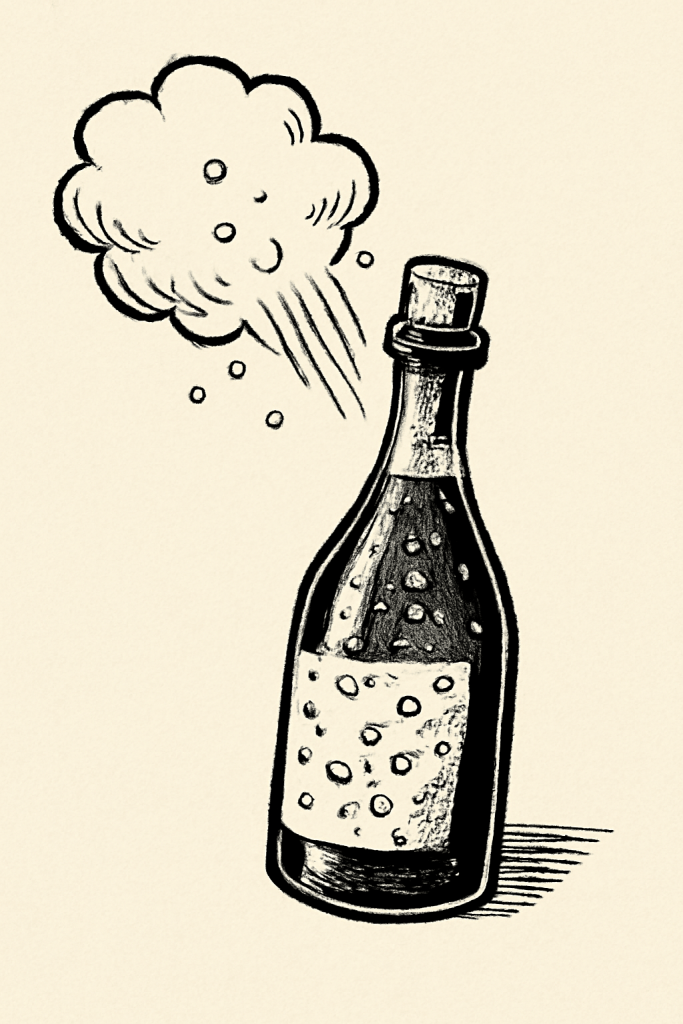 Quello che succede in bottiglia è straordinario: la CO₂ prodotta dalla fermentazione non può sfuggire. Nelle botti, la CO₂ può facilmente dispersa nell’aria, ma nelle bottiglie, dove il vino è sigillato, essa rimane intrappolata, dando vita alla magia delle bollicine. È un fenomeno che ha fatto nascere lo champagne come lo conosciamo oggi: un vino che fermenta due volte, con un ciclo che inizia durante la vendemmia e prosegue attraverso l’inverno fino alla risurrezione primaverile.