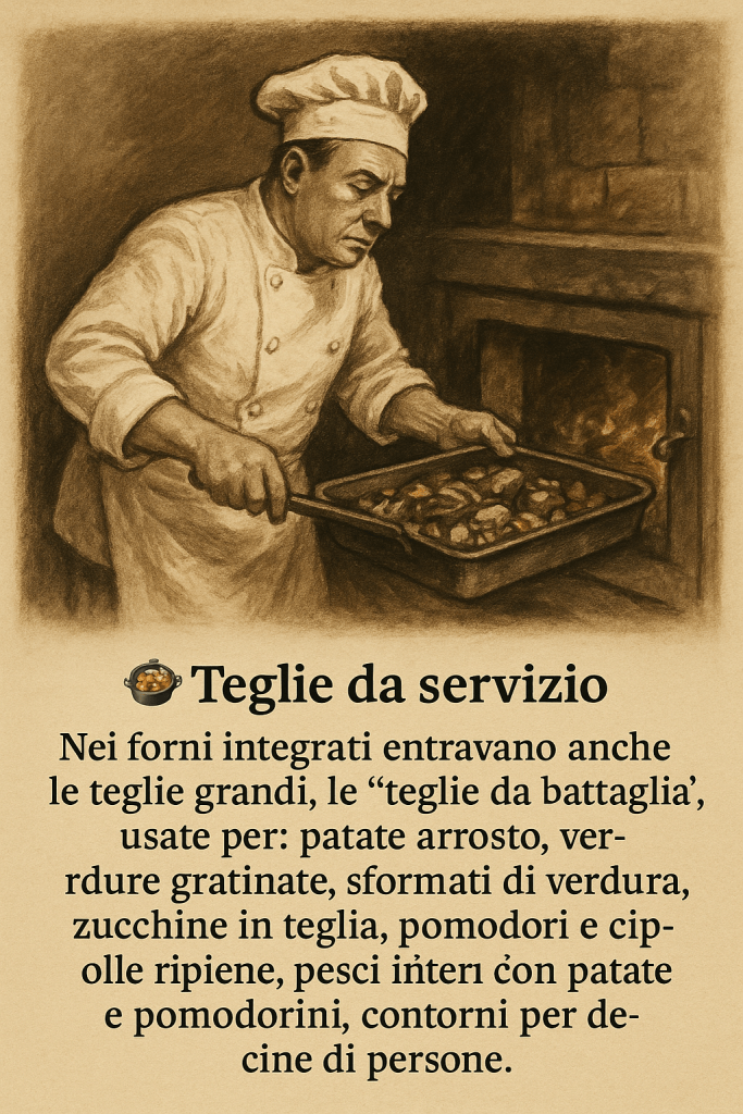 Nei forni integrati entravano anche le teglie grandi, le “teglie da battaglia”, usate per: