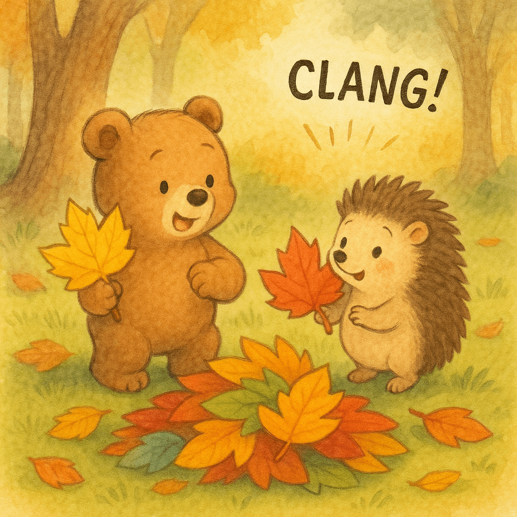 Più tardi, Bartolomeo e Ricciolina raccolsero foglie colorate per comporre un grande arcobaleno sul prato.