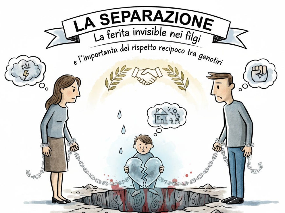 La separazione tra due genitori è una delle esperienze più complesse e dolorose che una famiglia possa affrontare. Spesso si pensa che la sofferenza dei figli derivi dalla divisione materiale: due case, due routine, un nuovo equilibrio che cambia la loro vita quotidiana. Ma se osserviamo con maggiore attenzione, ci rendiamo conto che la vera ferita, quella più profonda e difficile da guarire, non nasce dalla firma su un foglio o dalla separazione dei beni, ma dal conflitto emotivo che si scatena tra i genitori. La vera sofferenza per i figli non è nel cambiamento delle condizioni di vita, ma nell’assistere alla trasformazione di un amore che si spegne in rancore, nella frattura tra due persone che un tempo si amavano e che ora si feriscono l’un l’altro. I bambini non sono traumatizzati dalla separazione in sé, ma dal conflitto che essa genera. È fondamentale, quindi, che i genitori imparino a separarsi in modo sano, rispettando i propri figli e l’altro genitore.