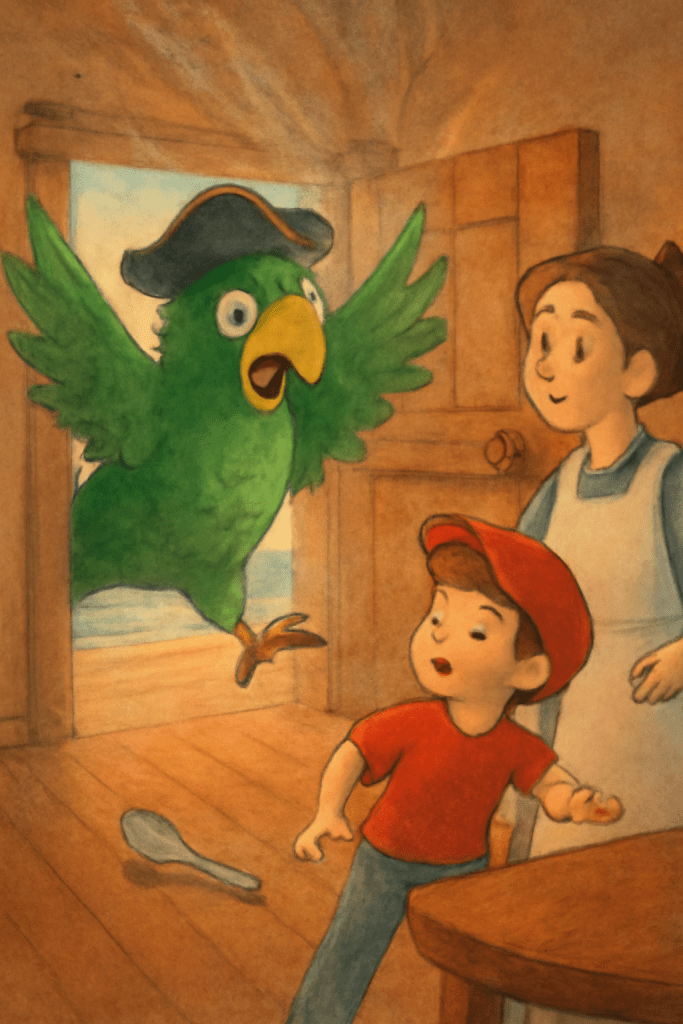 Poi c’è Capitan Long John, un pappagallo enorme, buffo e gentile, che parla come se ogni parola fosse un’avventura.