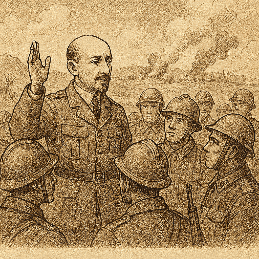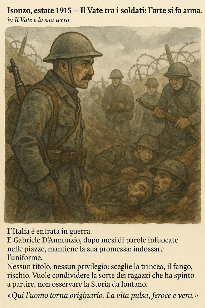 «Isonzo, estate 1915 — Il Vate tra i soldati: l’arte si fa arma.»