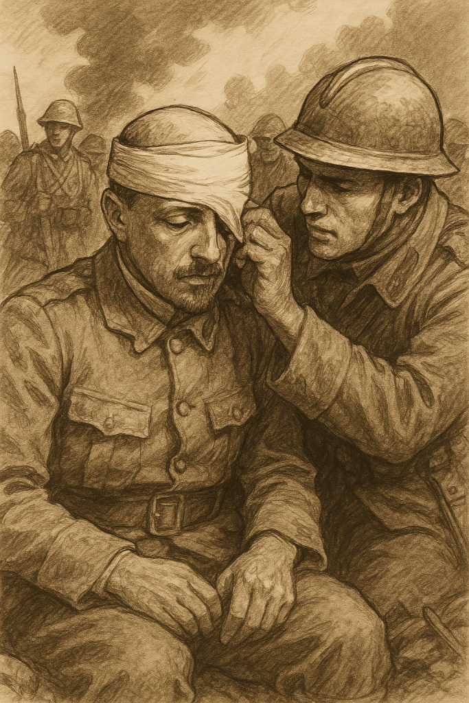 Le sue prime ore al fronte gli insegnano una verità cruda: