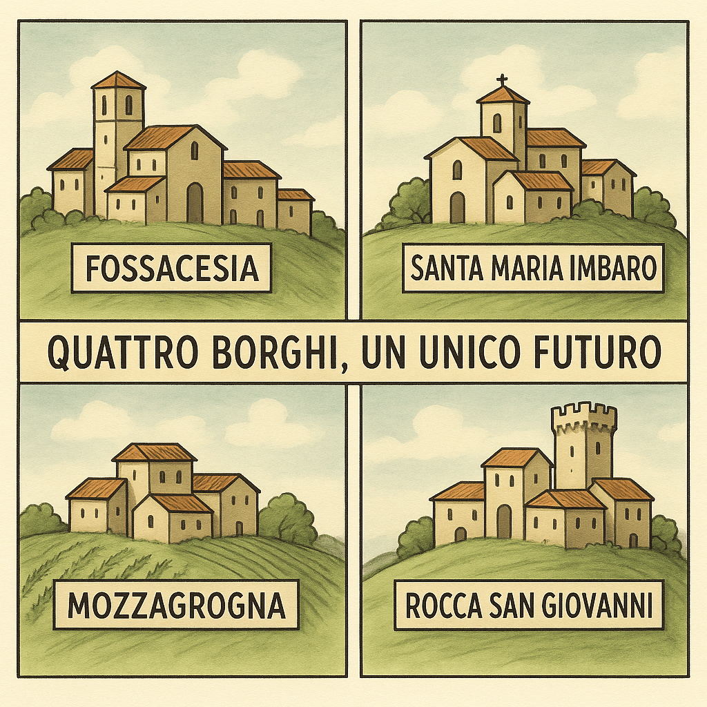 Fossacesia, Santa Maria Imbaro, Mozzagrogna e Rocca San Giovanni: quattro borghi, una sola comunità possibile. Numeri, storia e valori per capire se l’unione può diventare realtà entro il 2030.