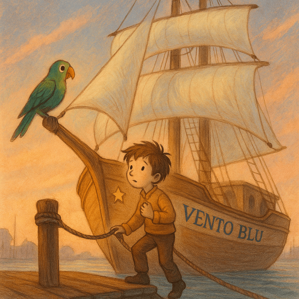 «Oggi è il grande giorno, Jim! Preparati a conoscere il veliero più straordinario dei mari: il Vento Blu!»
