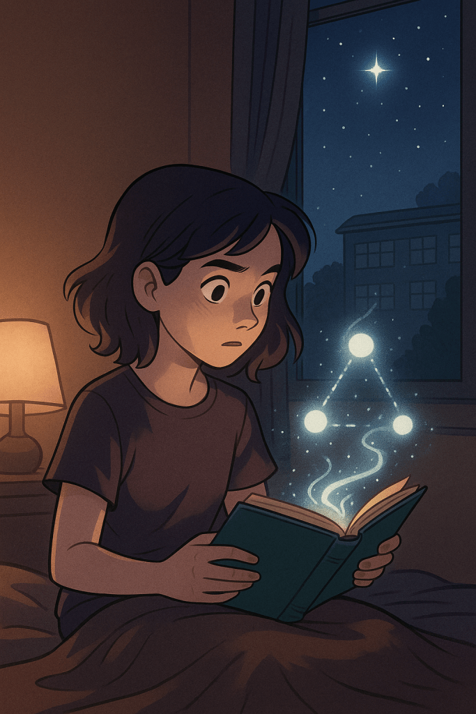 Le luci erano spente, ma sul pavimento brillavano tre stelle. Non disegnate: vere, pulsanti, vive.